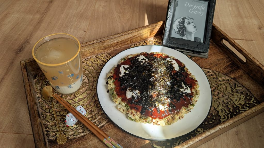 Eines meiner liebsten kulinarischen Mitbringsel aus dem Urlaub ist Okonomiyaki, eine Art Pfannkuchen aus Kohl und anderem Gemüse mit herzhafter Soße aus Japan. Uns war klar, dass wir in Japan viel verschiedenes Essen ausprobieren wollen, da mein Mann, meine Tochter und ich der japanischen Küche gegenüber sehr wohlgesinnt sind. Nun einmal authentisch japanisch zu essen, das war etwas, worauf wir uns alle freuten. Wir aßen fantastische Ramen (eine japanische Nudelsuppe – die Basis der Brühe ist von Restaurant zu Restaurant anders) in Tokyo, leckere Onigiri (Reisbällchen) in Kyoto, und selbst der Burger in Kumano, einer kleinen Stadt an der Küste, war äußerst schmackhaft. Das Beste für mich war aber Okonomiyaki. Mein Mann suchte nach einer uns bisher unbekannten Spezialität in der Nähe unserer Unterkunft in Tokyo und stieß auf ein kleines Restaurant. Dort angekommen, wurden wir zu einem Tisch weiter hinten geführt, an dem wir unsere Schuhe ausziehen sollten und ziemlich nah am Boden platziert wurden, auf einer nur leicht erhöhten Bank. Okonomiyaki war die Spezialität des Hauses, und wir drei hatten keine Ahnung, was uns erwartet. Eine scheinbar endlose Schlange an verschiedenen Varianten gab es. Als mein Okonomiyaki kam, duftete dieser bereits ausgesprochen gut, und ich konnte es gar nicht abwarten zu probieren. Ich wurde nicht enttäuscht. Die Textur war fluffig und weich zugleich, die Soße würzig und cremig, das viele Gemüse darin lecker. Ich wusste, ich werde Okonomiyaki zu Hause nachmachen. Und das tat ich. Bis heute gibt es bei mir regelmäßig den gesunden und zugleich reichhaltigen Pfannkuchen. Es waren einige Versuche nötig, das richtige Rezept zu finden und dieses dann anzupassen, bis es mir schmeckt. Wenn ich Okonomiyaki esse, bin ich immer wieder ganz kurz dort, in dem kleinen Restaurant in Tokyo, spüre wieder die Vorfreude auf etwas Neues, obwohl ich das Gericht ja mittlerweile oft gegessen habe. Das Gefühl aber bleibt. Ich richte ihn mir immer mit viel Mühe an und genieße ihn in vollen Zügen.